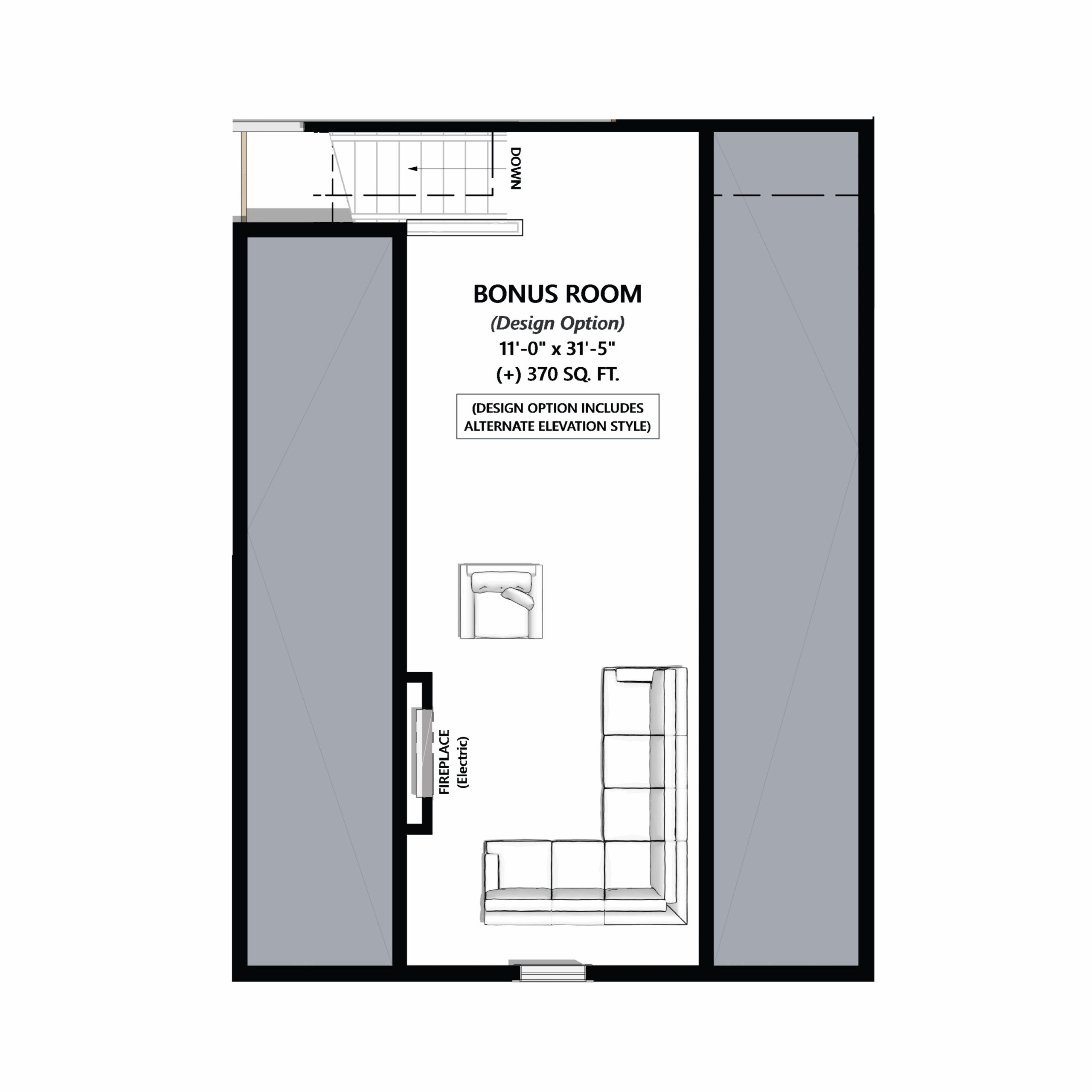 For added flexibility, an alternate elevation style introduces the option for a bonus room above the garage, ideal for creating additional space that adapts to your needs.